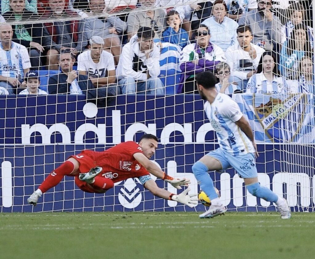 La pegada del conjunto ‘indálico’ era evidente y si el Málaga no estaba atento en tareas defensivas, los atacantes visitantes no dudaban en probar a Alfonso Herrero. El meta toledano tuvo que intervenir de nuevo en el 35’ ante un potente disparo de Marc Pubill que acabó en saque de esquina.