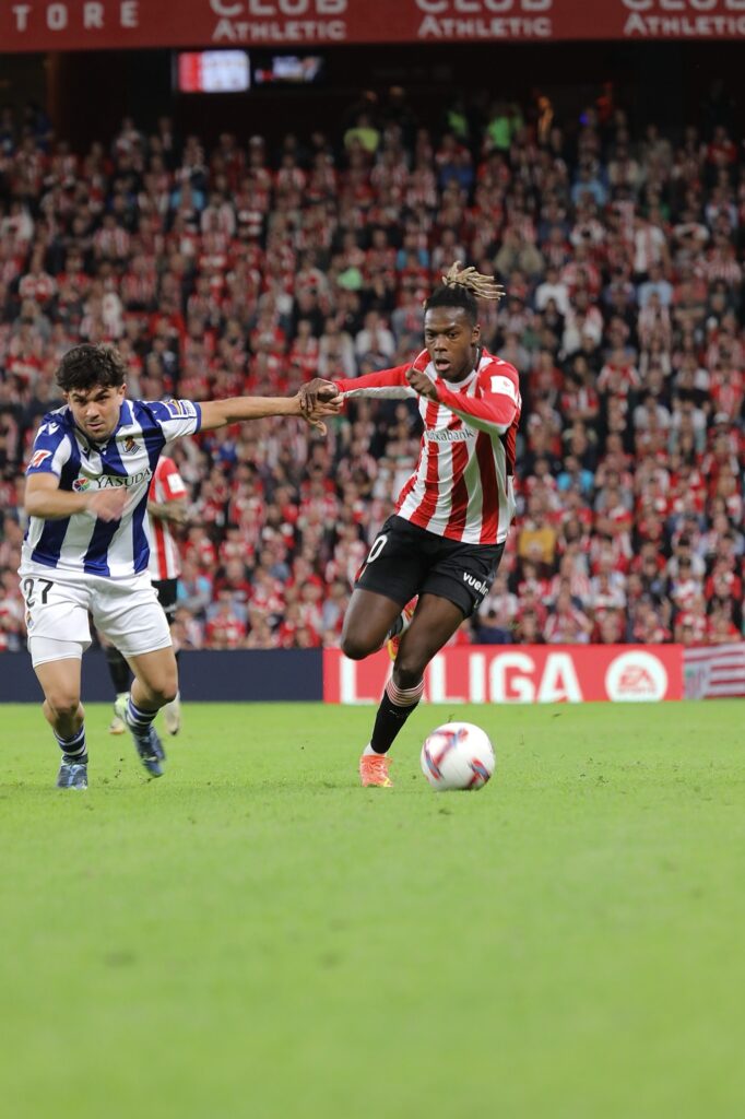 El partido arrancó con el Athletic decidido a imponer su ritmo desde el primer minuto. Valverde, que sorprendió con un once en el que destacó Álvaro Djaló como delantero centro y la presencia de Beñat Prados en el mediocampo, planteó una presión alta que incomodó a una Real Sociedad que tardó en asentarse. Los hermanos Williams, claves en la ofensiva rojiblanca, generaban constantes problemas con su velocidad y desborde.