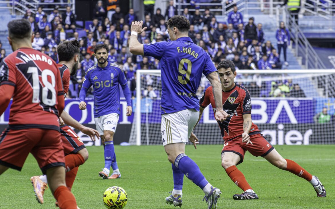 El partido estuvo cerca de explotar a los 20 minutos: Ilyas Chaira disparó tras una gran jugada iniciada por el propio Cazorla y Rondón marcó en el rechace, pero estaba adelantado. Después llegó la obra maestra que no fue: una falta del ‘8’ a la escuadra que se estampó en el larguero. Era el mejor Oviedo de la temporada: intenso, ordenado, presionando arriba, anulando al Rayo y atacando con criterio. Fede Viñas, un guerrero, contagió la fe del equipo. Pero el marcador seguía a cero, y algo empezaba a oler a injusticia.