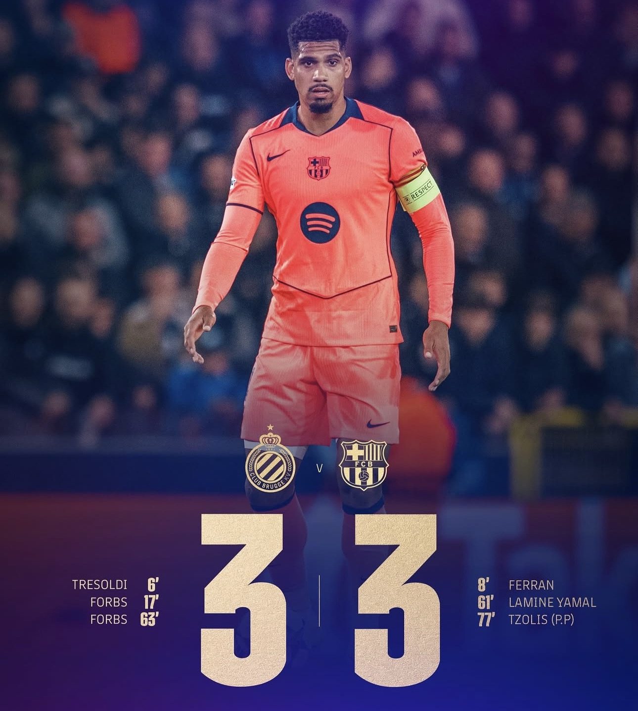 El Barça resiste en Brujas:empate de prestigio en un vibrante 3-3