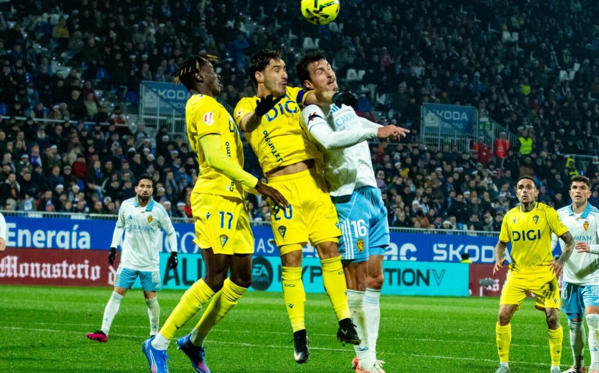 El Real Zaragoza vio truncada su buena racha de resultados tras caer por 1-2 frente a un Cádiz que supo castigar con dureza dos errores concentrados en apenas cinco minutos de la segunda mitad. Un gol en propia puerta de Radovanovic y un misil lejano de Moussa Diakité condenaron a un conjunto aragonés que lo intentó hasta el final, pero que esta vez murió en la orilla sin poder repetir la épica reacción de la pasada jornada en La Rosaleda.