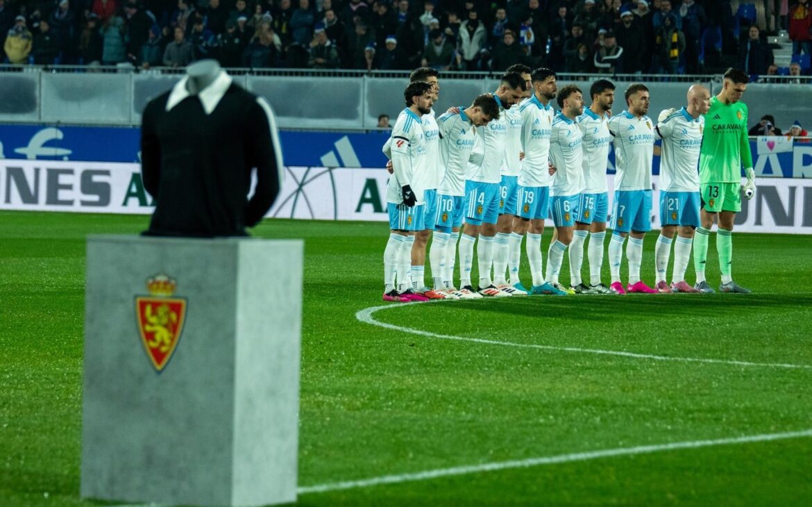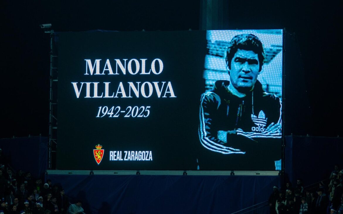 El partido empezó con un precioso homenaje a Manolo Villanova, con un minuto de silencio, la presencia de su familia y una de sus camisetas de portero expuesta en el césped como recuerdo a un zaragocista de corazón.