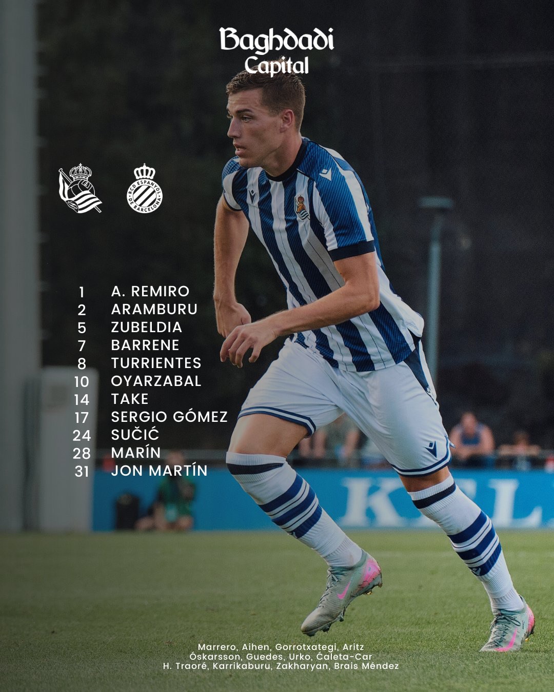 Cambios de nuevo en el la Real Sociedad ; se marchaban Oyarzabal y Sergio Gómez y entraban Brais y Ahien.