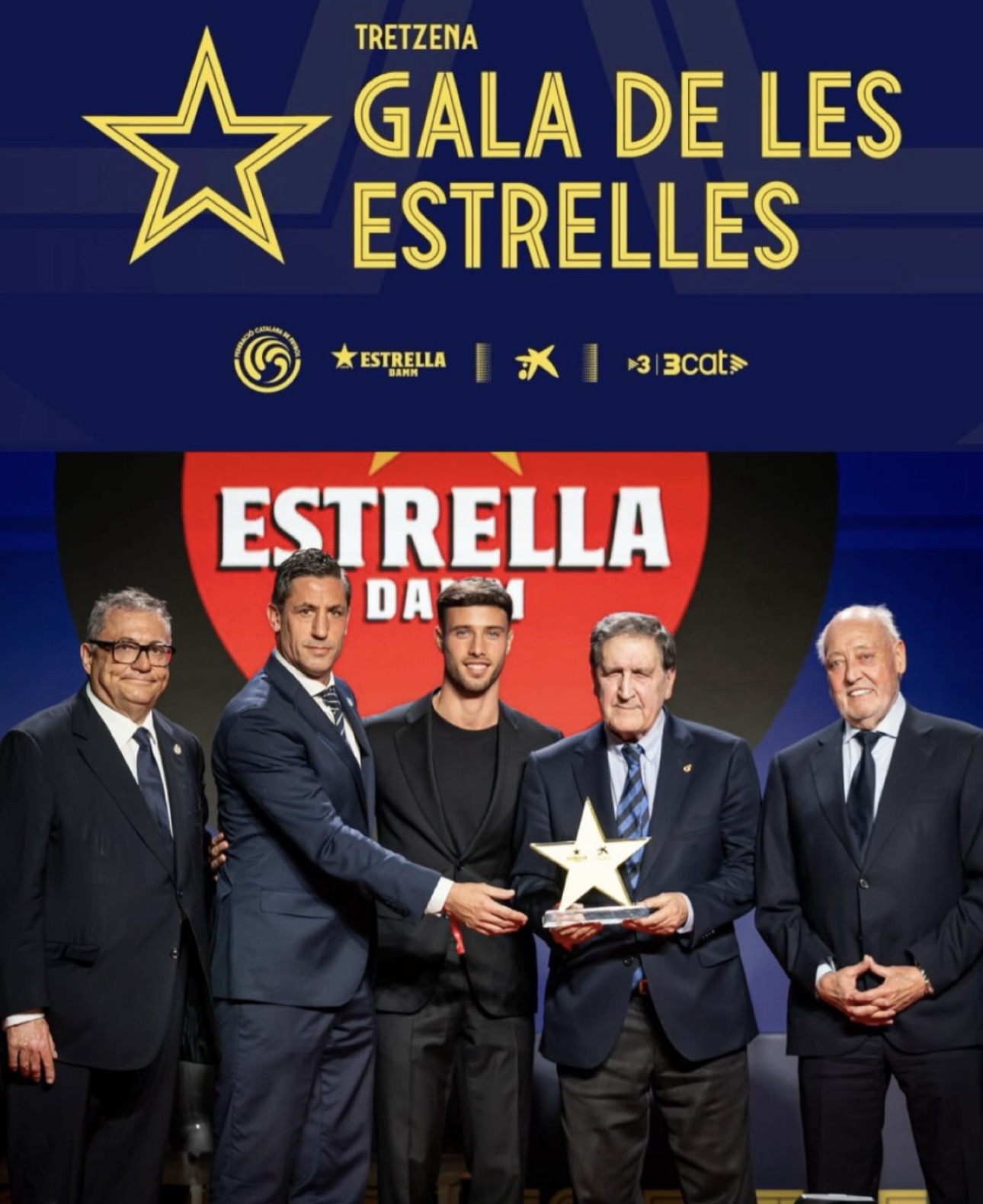A nivel individual, el capitán del club , Javi Puado recibió el premio que le acredita como máximo goleador catalán de la pasada temporada. El delantero blanquiazul recogió el galardón de manos de Gerard López, seleccionador absoluto masculino de la selección de Cataluña.