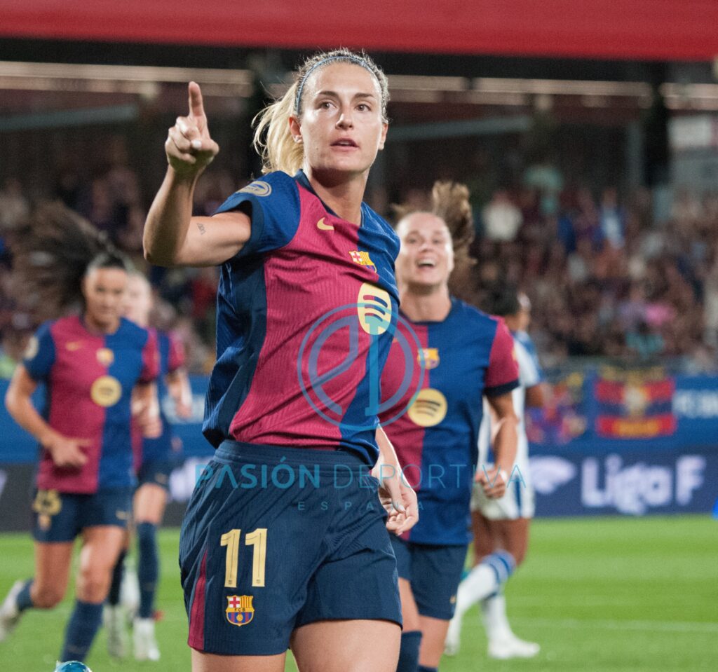 Intentando sorprender desde el inicio las ‘txuri-urdin’ con balones largos en busca de Amaiur, fue el Barça quien tuvo la primera gran clara ocasión a los siete minutos con un perfecto balón al área de Mapi León que Aitana empalmó tal y como venía pero que se estrelló en al larguero.