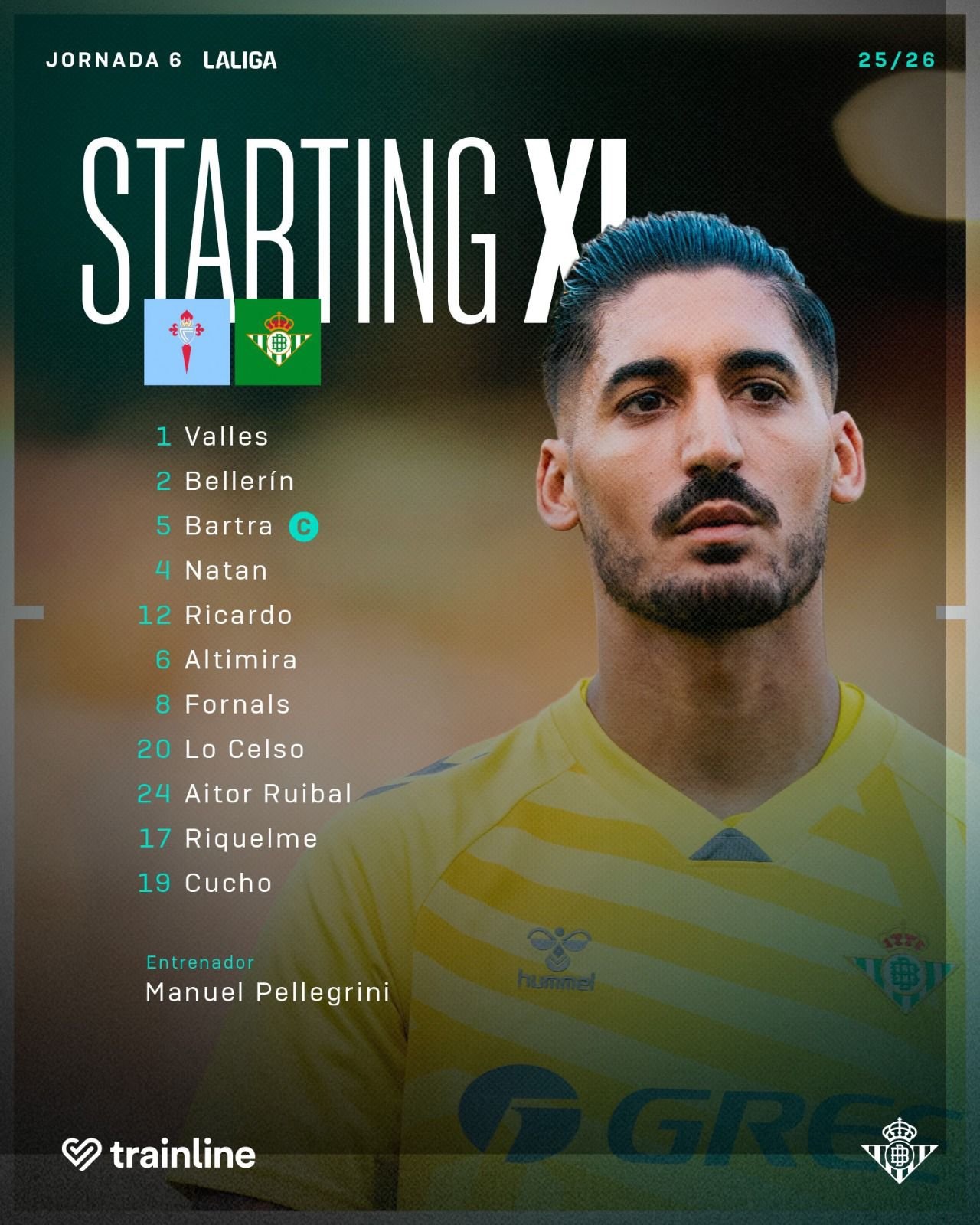 Cambios en el Betis y en el Celta : Por parte del Betis, se retiraban el Cucho, Riquelme y Altimira y entraban Bakambu, el Chimy y V. Gómez. Y por parte del Celta , se retiraban Hugo Álvarez y Pablo Durán y entraban Bryan Zaragoza e Iago Aspas.