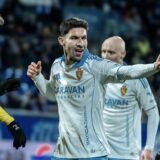 El Yamiq siguió el partido desde la grada del Reino de León, donde el Zaragoza rescató un empate. El central valoró el rendimiento del equipo: “El primer tiempo no estuvo bien, pero en el segundo creamos muchas ocasiones. Sacamos un punto, aunque queríamos los tres”.