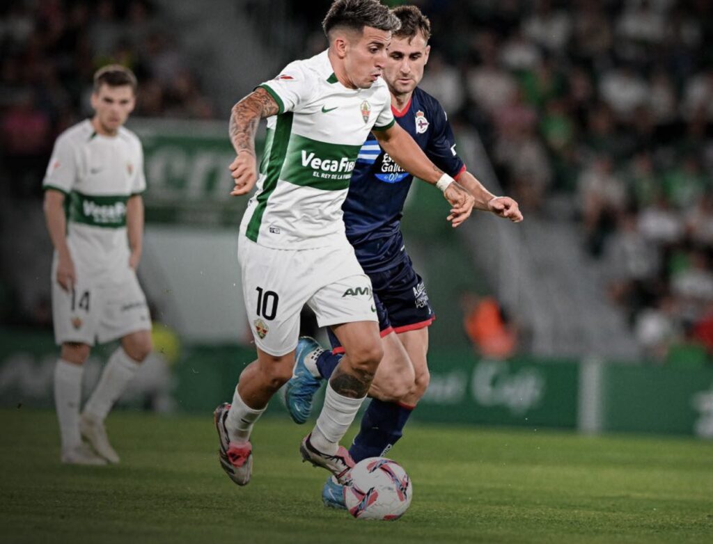 El partido arrancó con el Elche imponiendo su estilo de juego, buscando controlar la posesión y generar peligro desde el medio campo. Sin embargo, el Deportivo de La Coruña, aunque presionado, logró resistir sin permitir que los locales llegaran con claridad al área de Helton Leite. El equipo de Sarabia apostó por un esquema ofensivo con Yago Santiago y Nico Fernández moviéndose por los costados, mientras que Mourad lideraba el ataque, aunque sin generar demasiados sobresaltos para la defensa blanquiazul. A pesar del dominio local, el marcador no se movió y ambos equipos se marcharon al descanso con un 0-0 que reflejaba la falta de precisión en los metros finales.