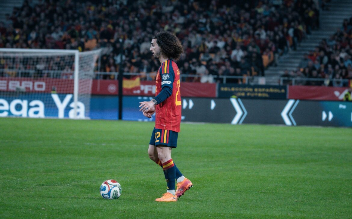 Once de España : Unai Simón, Marcos Llorente, Cubarsí, Laporte, Cucurella, Aleix García, Fabián Ruiz, Merino, Yeremy Pino, Dani Olmo y Oyarzabal.