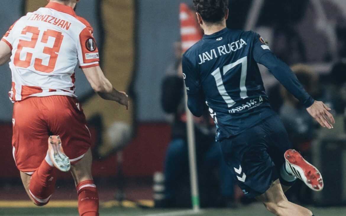 Fer López dejaba su primer detalle de calidad en el Rajko Mitic Stadium pero no le salió el pase.