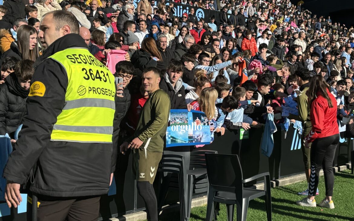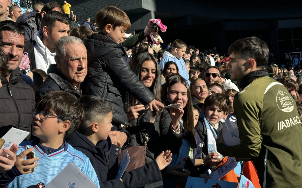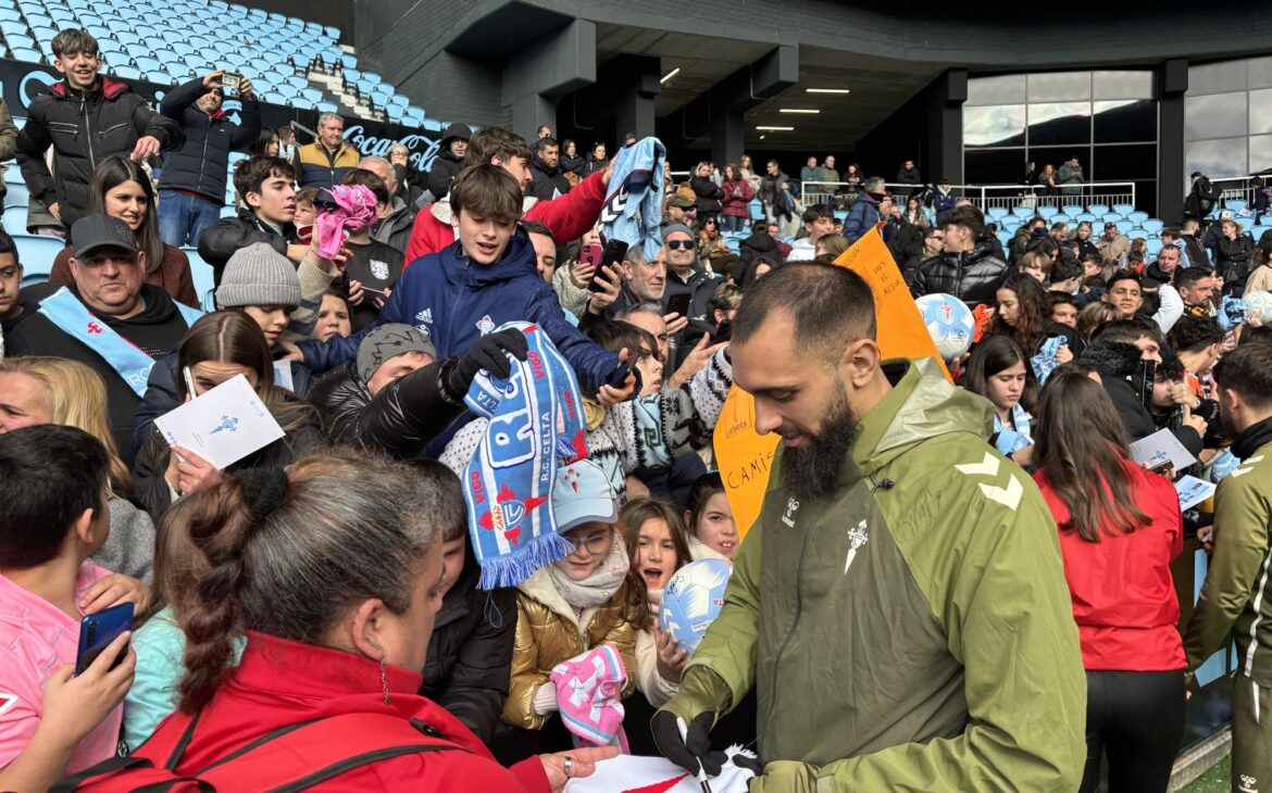 Este lunes Balaidos ha abierto sus puertas a la afición en la víspera de reyes para que los aficionados celestes disfrutasen del entrenamiento del primer equipo. Tras el mismo, los futbolistas acompañados del mister han firmado autógrafos a los presentes . Además les han obsequiado con balones que han lanzado los jugadores a las gradas y postales firmadas.