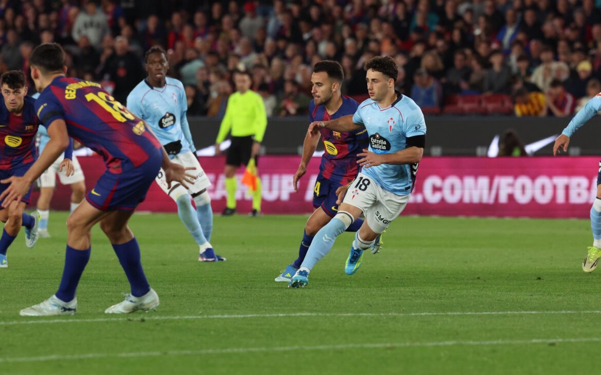 Este miércoles se disputó el encuentro correspondiente a la jornada 33 de La Liga entre el FC Barcelona y el RC Celta . Los vigueses cayeron derrotados por la mínima a pesar de ser superiores . Los de Claudio Giraldez hicieron un partido perfecto con un juego vistoso Made in A Madroa, pero no hubo acierto de cara a la portería de Joan Garcia.