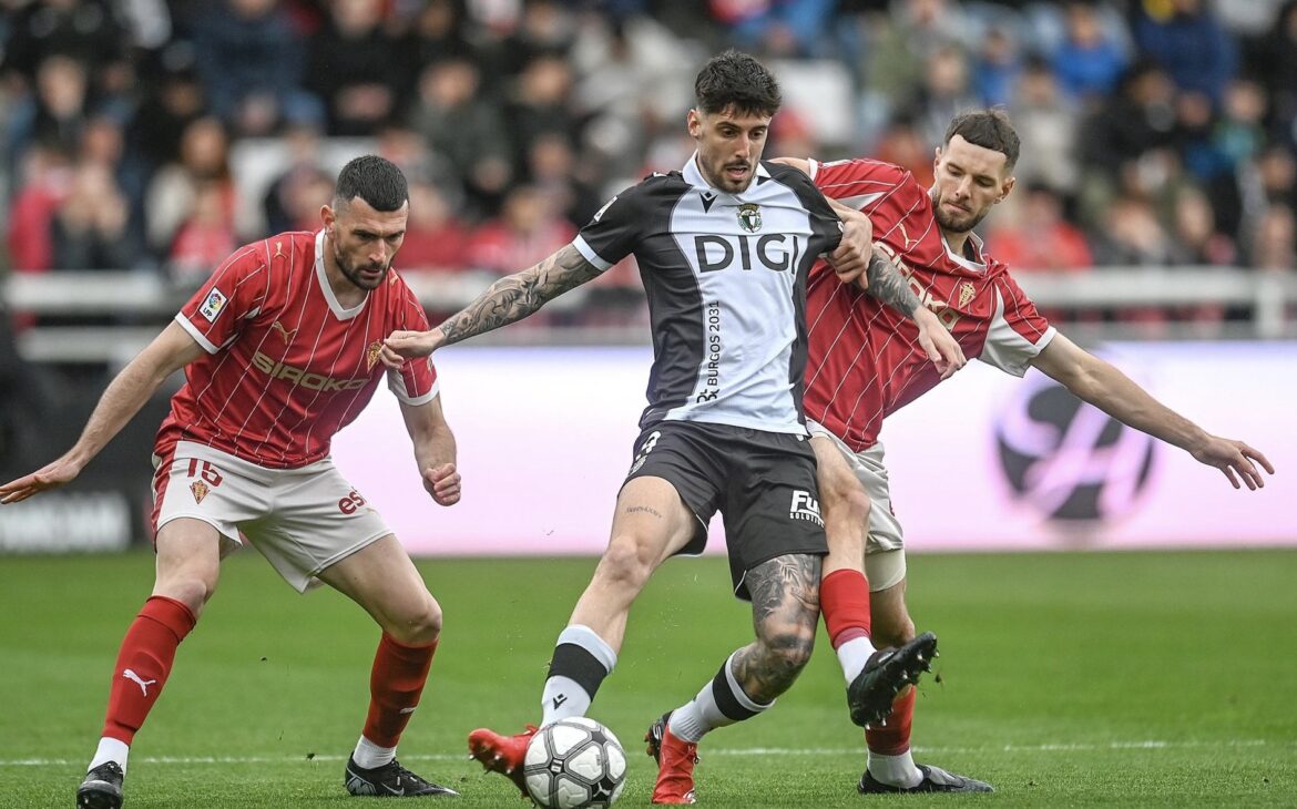 El Sporting monopolizó la posesión del balón durante muchos tramos del primer tiempo, pero lo hizo de manera completamente estéril. Le faltó profundidad, velocidad en la circulación y capacidad para generar desequilibrio en los metros finales. El Burgos, por su parte, se mostró muy ordenado en defensa, bien plantado sobre el terreno de juego y cómodo esperando su oportunidad al contragolpe, aunque tampoco consiguió inquietar al conjunto asturiano. La acción más destacada de estos primeros 45 minutos fue una dura entrada sobre Otero que provocó las protestas del Sporting, que reclamó la expulsión del jugador local, aunque el colegiado decidió no mostrar la tarjeta roja.