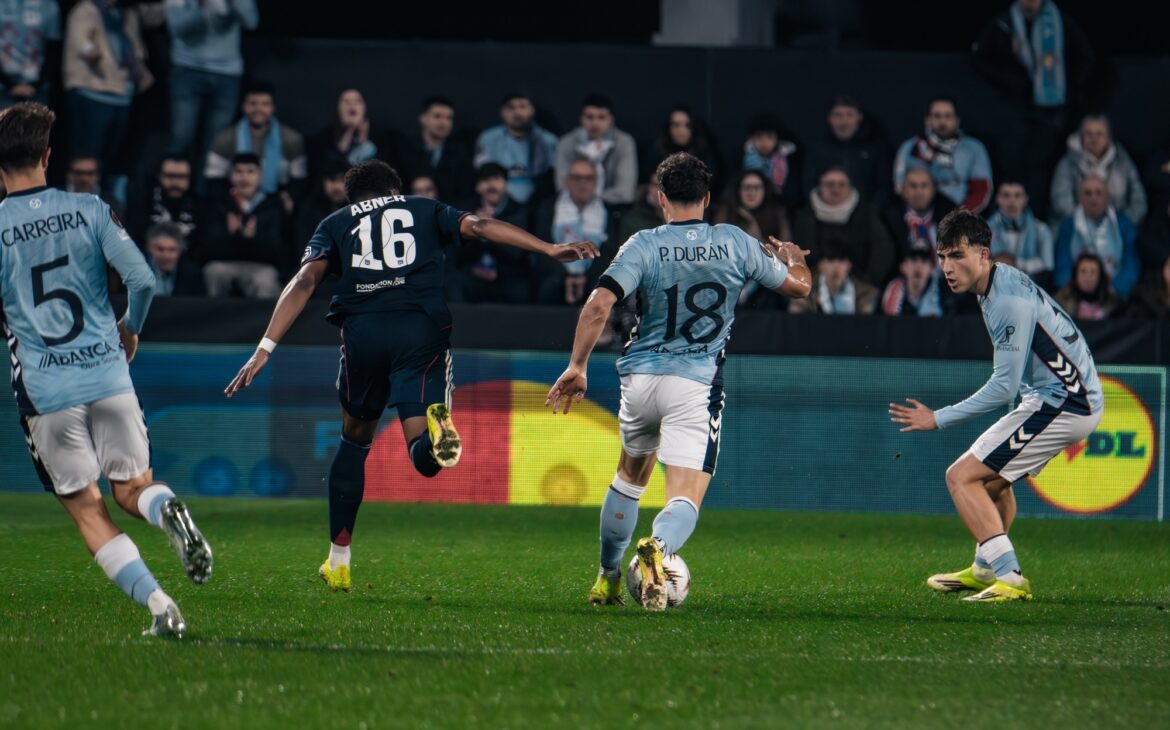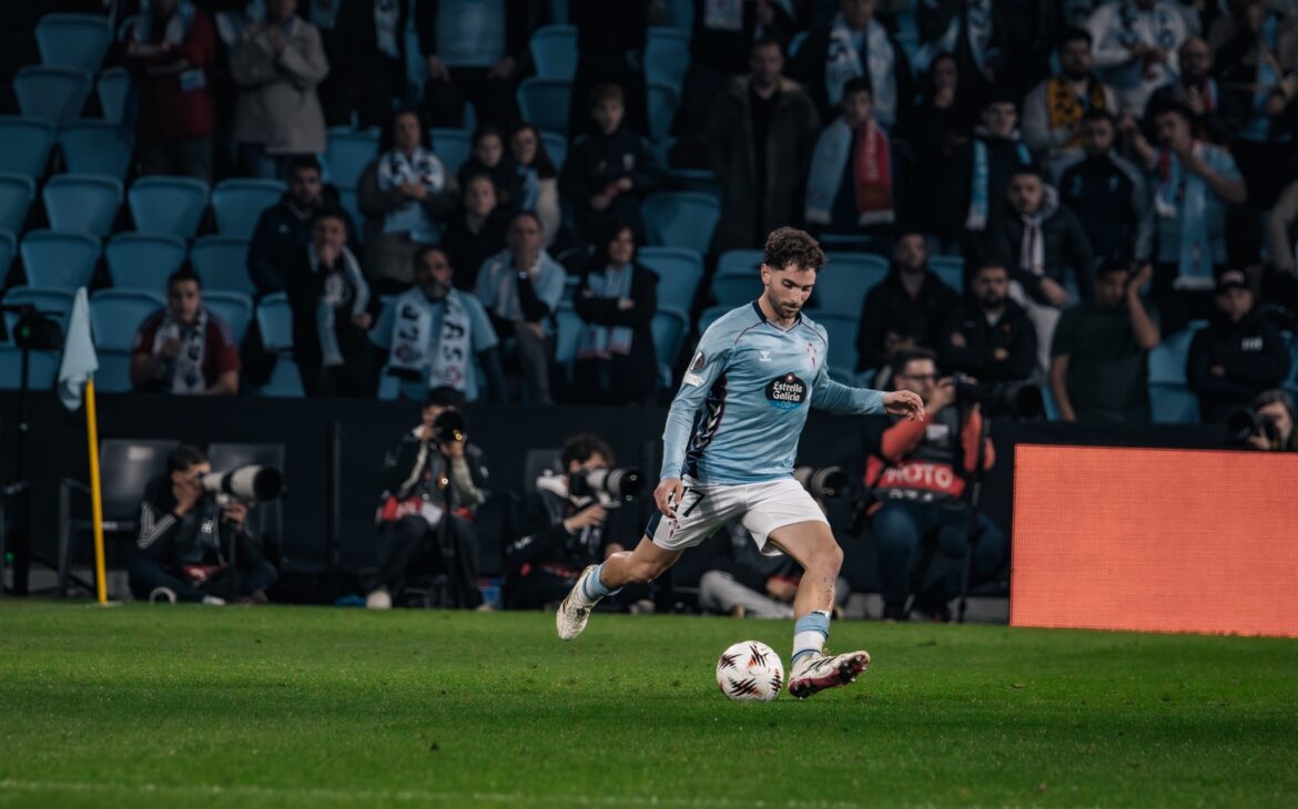Durante el primer tramo del encuentro el Celta llevó la iniciativa. El equipo dirigido por Claudio Giráldez encontraba espacios especialmente por las bandas, donde Óscar Mingueza y Javi Rueda se incorporaban con frecuencia al ataque. Tras varios avisos, el gol llegó en la primera mitad. En una jugada bien elaborada, el balón terminó en los pies de Javi Rueda dentro del área y el jugador celeste definió con precisión para poner el 1-0 y desatar la alegría de la afición en Balaídos.