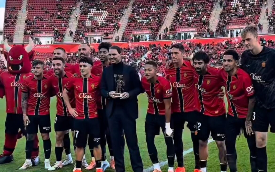 Antes de dar inicio el encuentro, el Estadi Mallorca Son Moix vivió un momento histórico con el homenaje a Rafa Nadal. El extenista manacorí recibió el primer ‘Dimoni d’Honor’, un galardón creado por el RCD Mallorca para reconocer a personalidades baleares cuya trayectoria y valores han dejado una huella imborrable. El acto se celebró sobre el césped, donde Alfonso Díaz, CEO del club, entregó la distinción a Nadal, que posó con el once titular y saludó a la afición entre una ovación cerrada. El club destacó su espíritu de superación, compromiso y humildad, subrayando que no había mejor manera de inaugurar este reconocimiento que con el mejor deportista español de todos los tiempos.